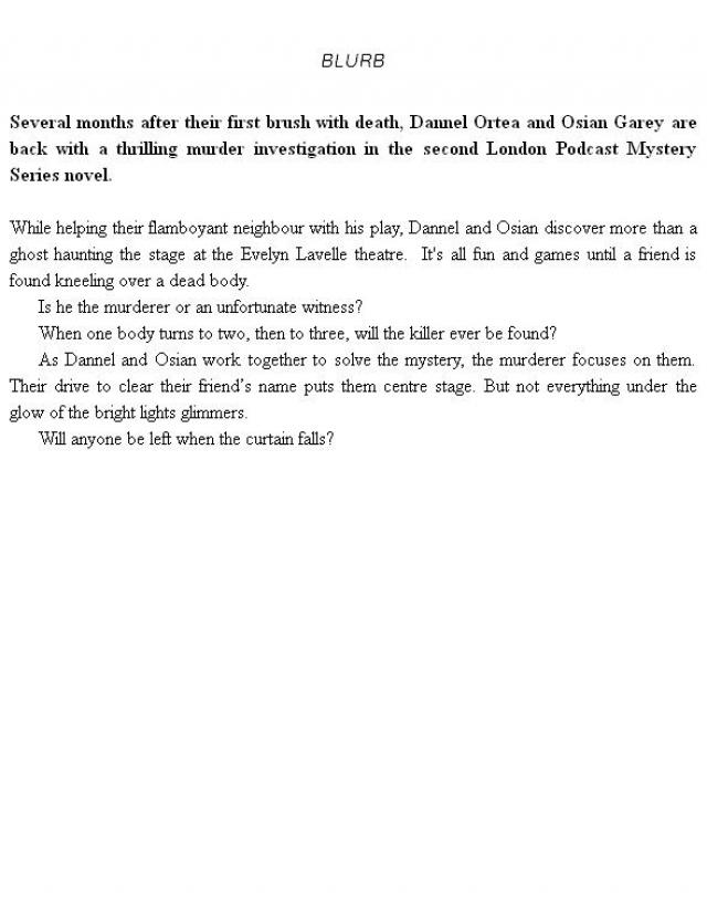 Several months after their first brush with death, Dannel Ortea and Osian Garey are back with a thrilling murder investigation in the second London Podcast Mystery Series novel.