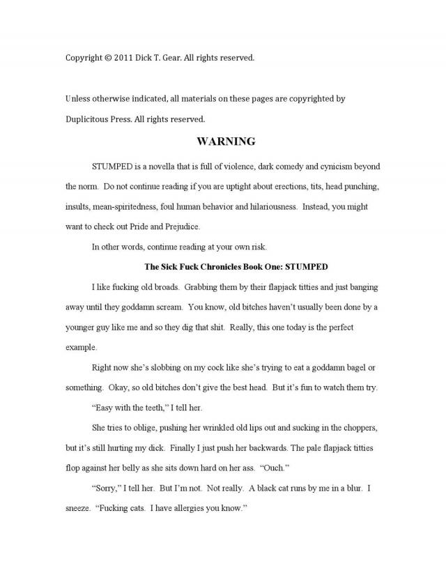 The Sick Fuck Chronicles Book One: STUMPED